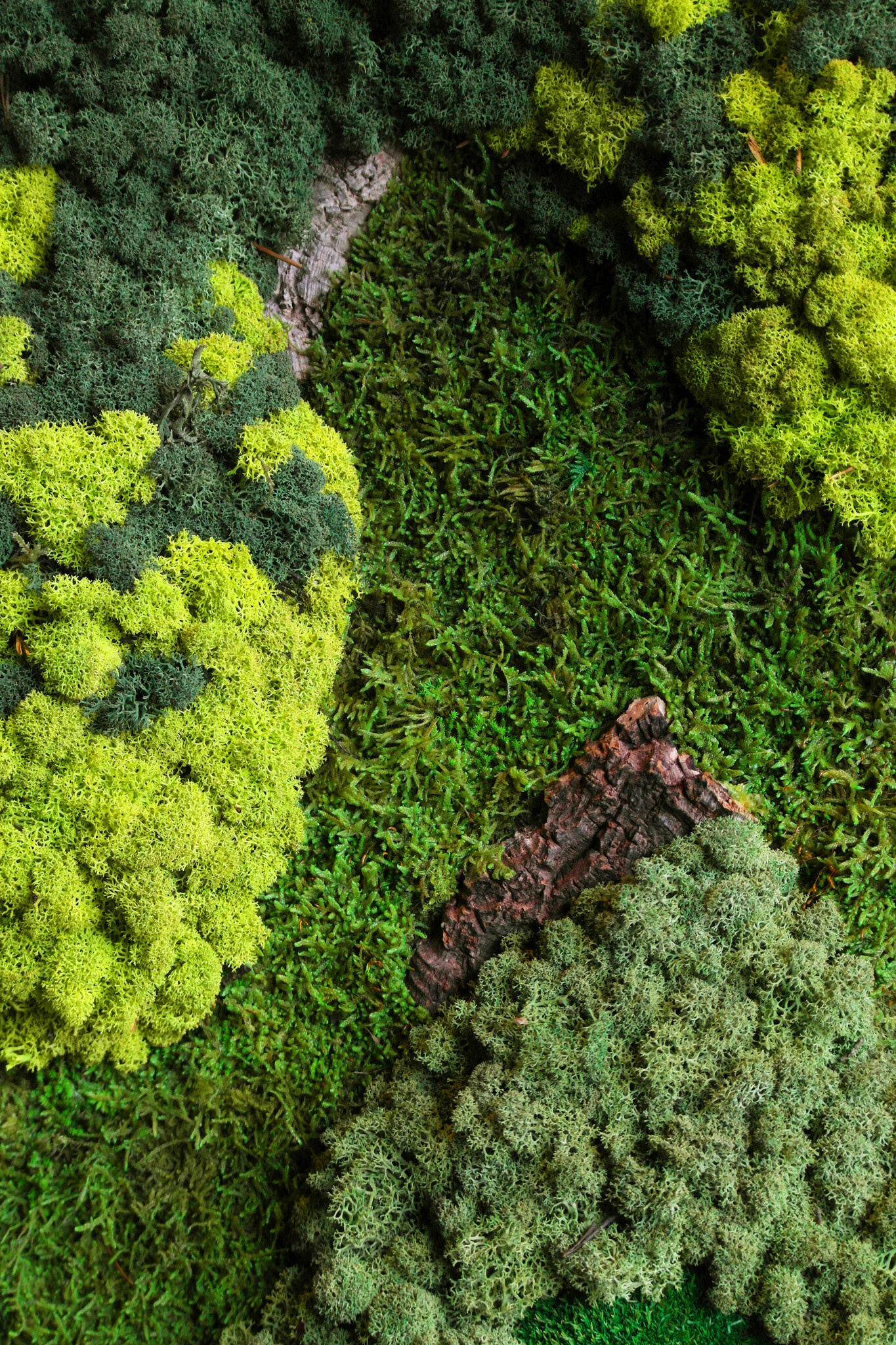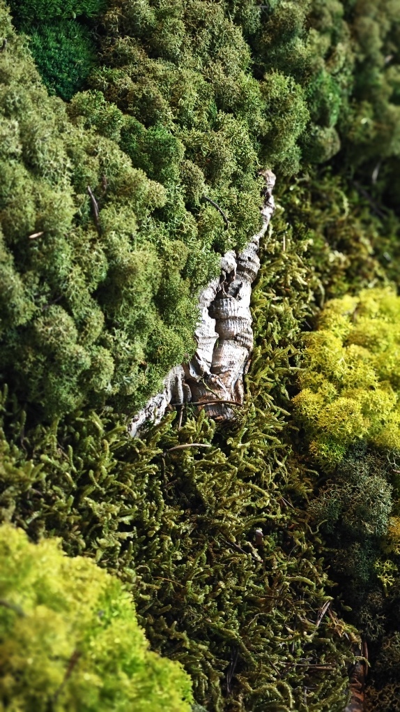 Dies ist die Moosart Kaiju. Ein Moosmix bestehend aus Rentiermoos, Flachmoos, Kugelmoos und Kork. Der Kork hat eine rötlich-braune Farbe und enthält tiefe Rillen. Dadurch erhält das Moosbild eine interessante Struktur und einen natürlichen Kontrast zum weichen, satten Grün der Moose.