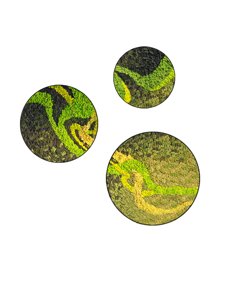 Wenn Sie sich für 3 Rundes Moosbild entscheiden, sorgen wir dafür, dass die Muster aufeinander abgestimmt sind und perfekt zueinander passen.
