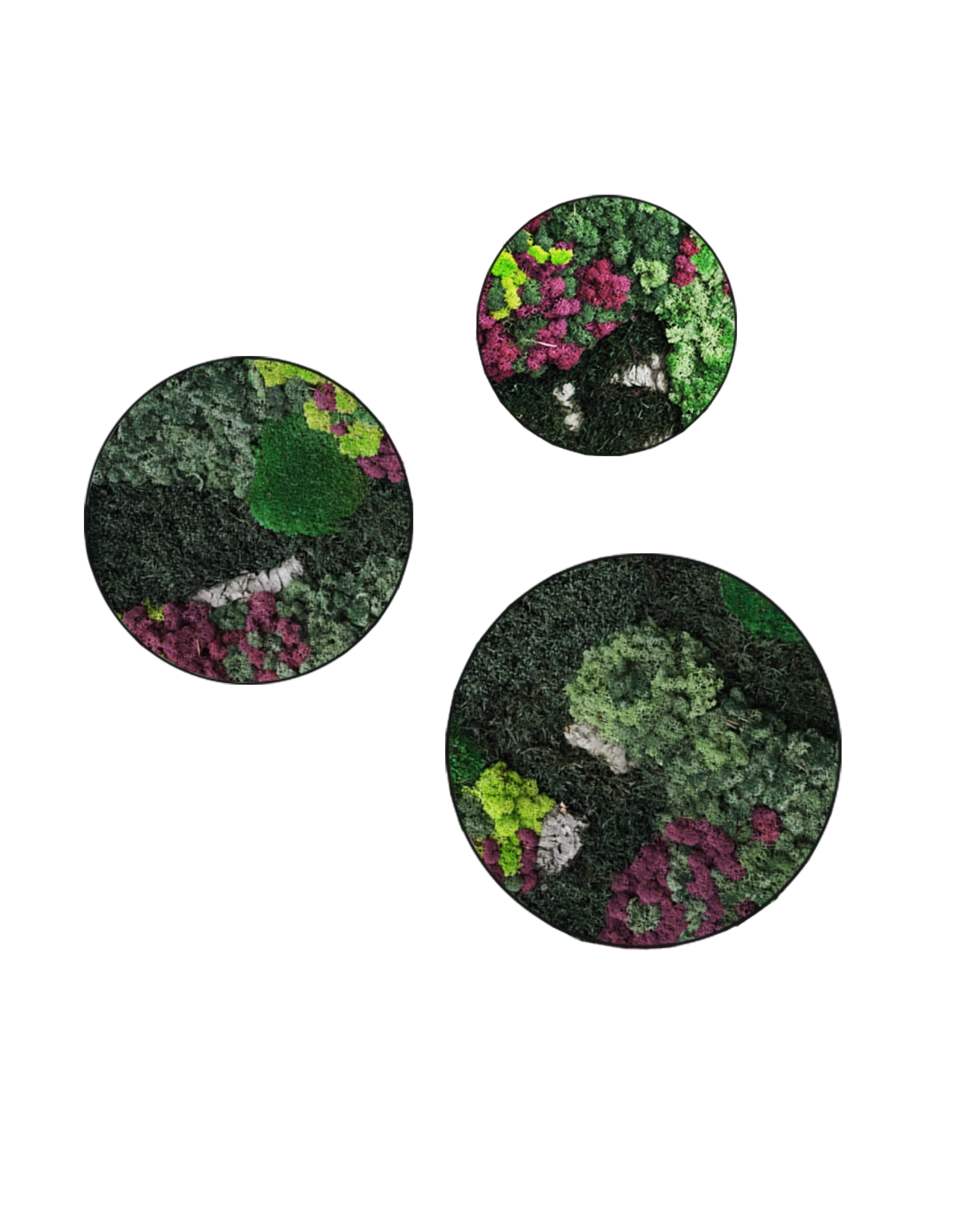 Die Rundes moosbild Set sind in verschiedenen Größen erhältlich. Das Bild zeigt das Muster des größten Zirkel-Sets. Da es sich um ein Naturprodukt handelt, ist jedes Moosbild ein Unikat. Daher kann das Layout des gekauften Rundes moosbild von dem ausgewählten Foto abweichen. Sollten Sie eine andere Größe benötigen? Bitte kontaktieren Sie uns.