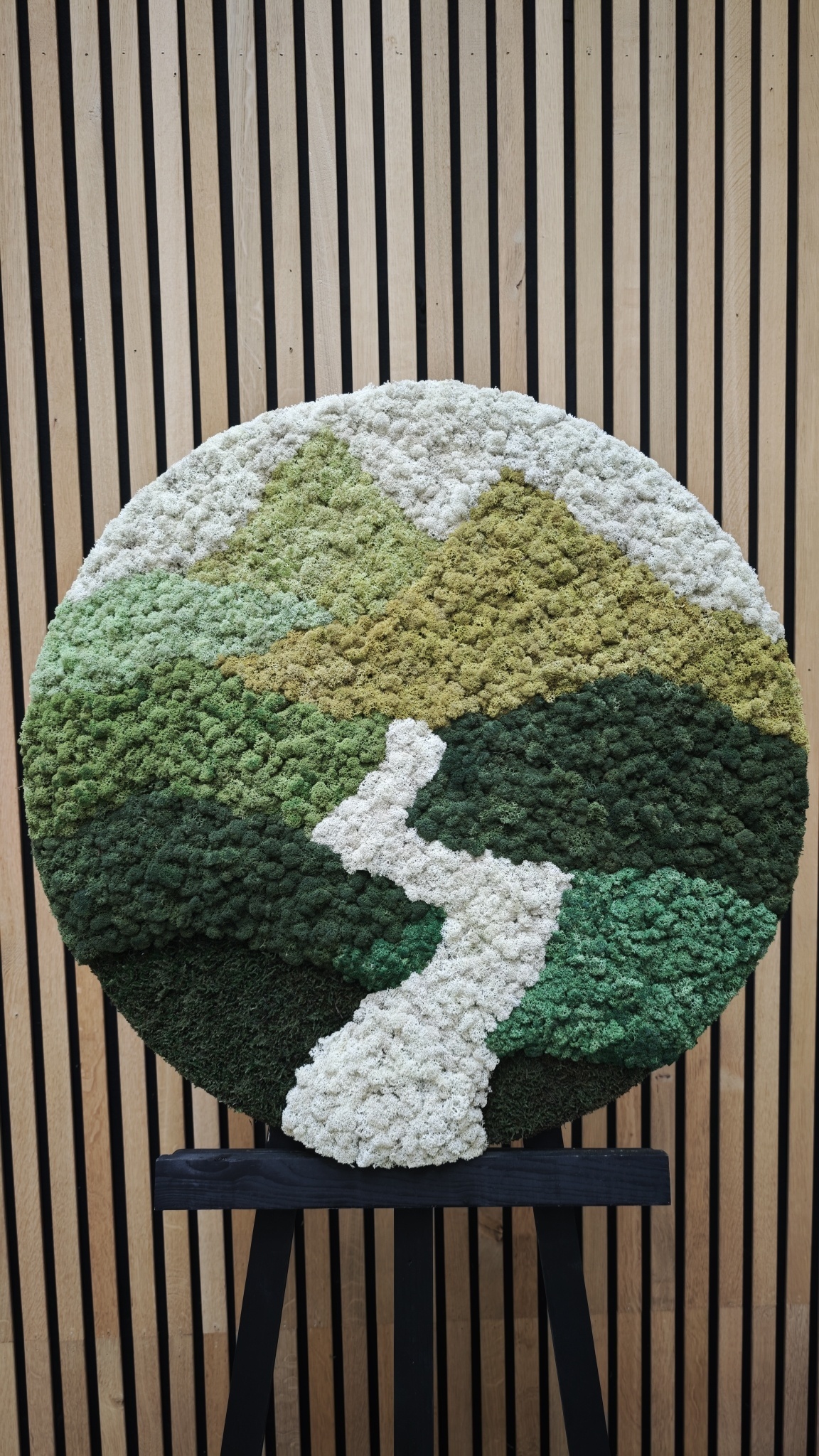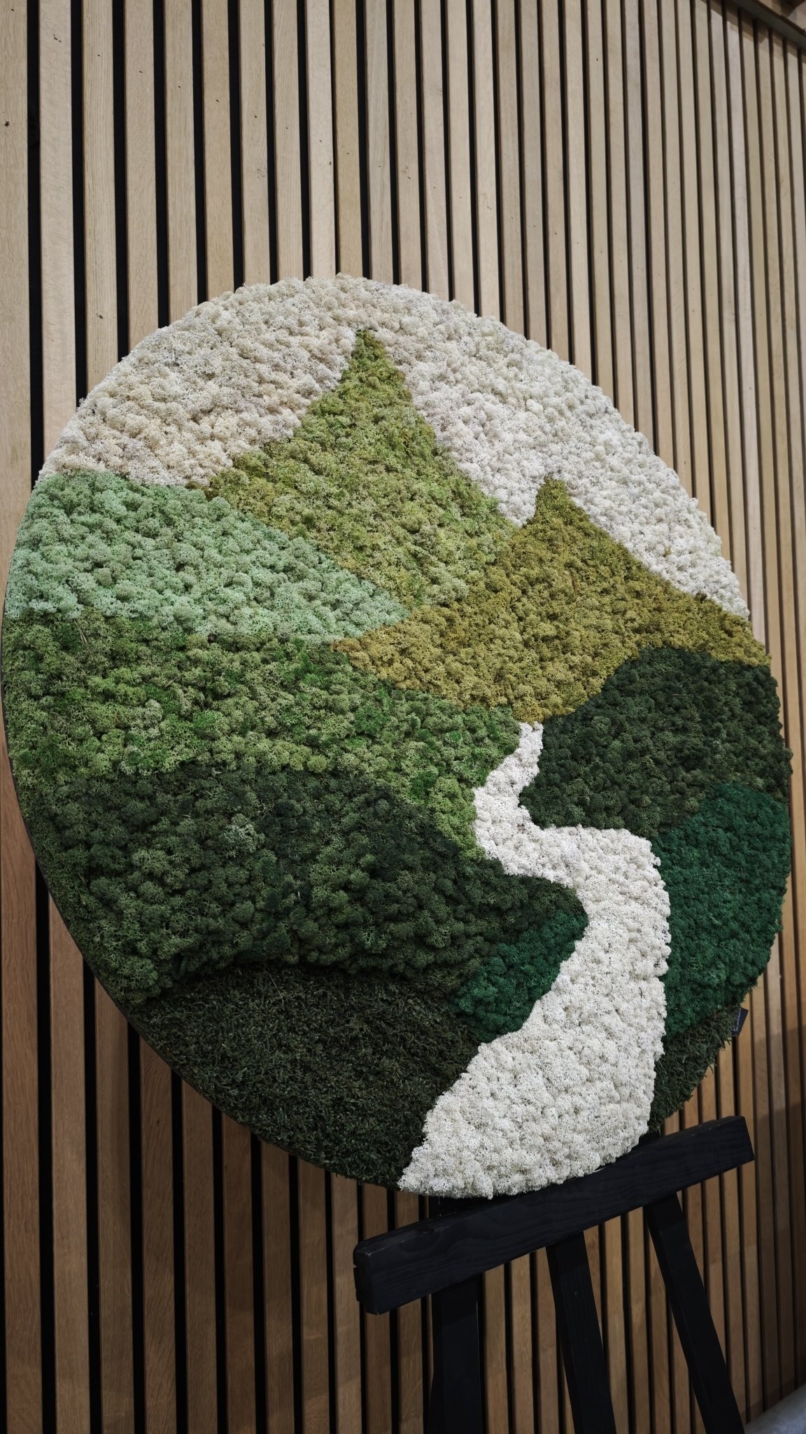 Valley ist ein Moosbild mit einem klaren und ausdrucksstarken Motiv. Die verschiedenen Grüntöne erzeugen eine beeindruckende Tiefenwirkung, wodurch die Berge besonders gut zur Geltung kommen. Die helle Farbe des Flusses bildet einen schönen Kontrast zum Grün und verstärkt die Landschaft des Designs. Dieses Moosbild ist ein echtes Statement und ein Blickfang in jedem Raum. Durch die Verwendung von Moos wirkt Valley künstlerisch und zugleich spielerisch und natürlich.