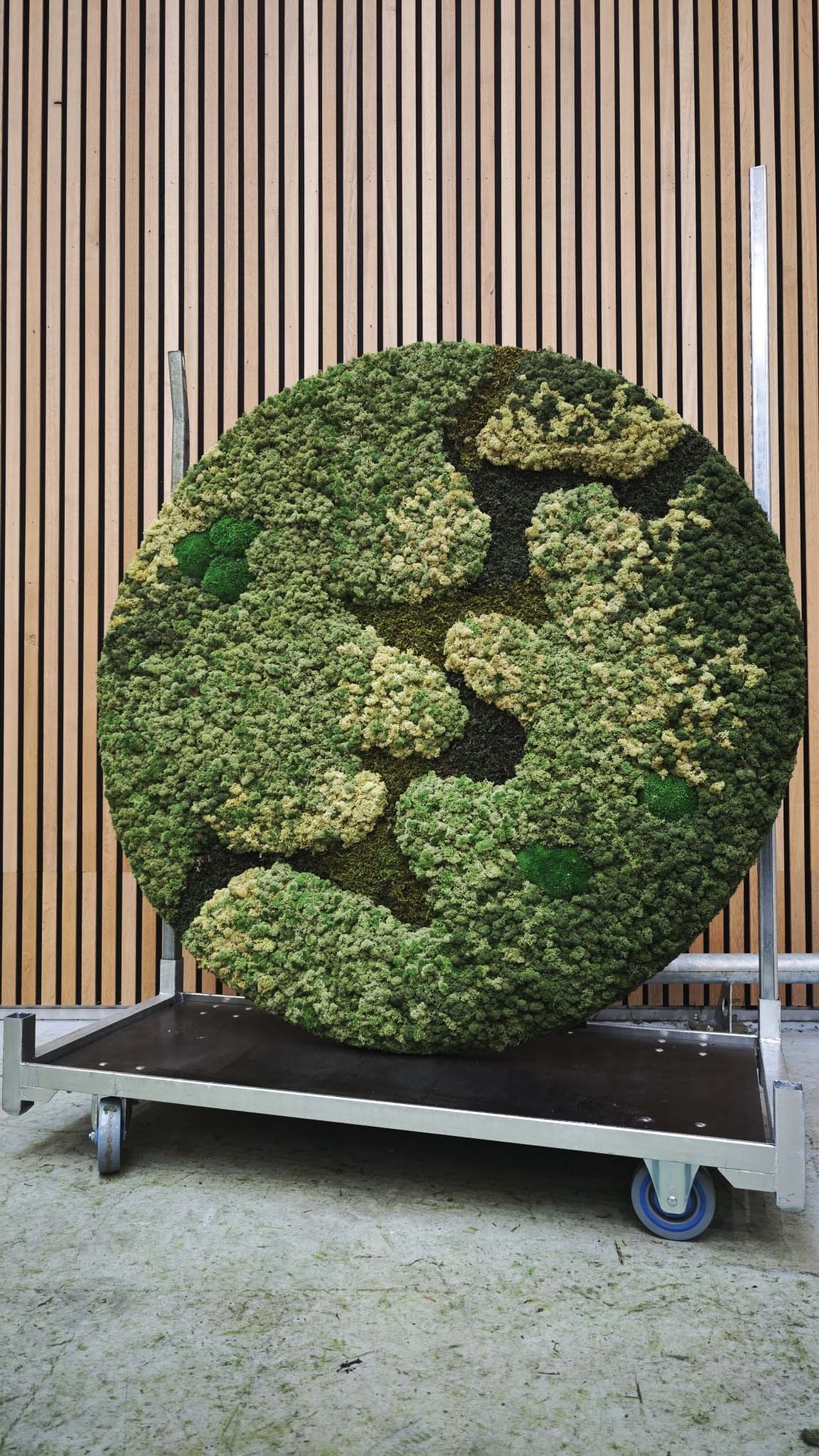 Die Mooskreation Vitalis erweckt Moos zum Leben in Form eines Pfades, der durch die Mitte des Kreises verläuft. Die weichen Moosstrukturen und natürlichen Farben sorgen für eine warme Ausstrahlung. Durch den Einsatz eines hellen Farbtons entsteht Ruhe und Ausgewogenheit. Das Design strahlt Schlichtheit und Tiefe aus. Ideal für alle, die natürliche Akzente mit Bedeutung schätzen.