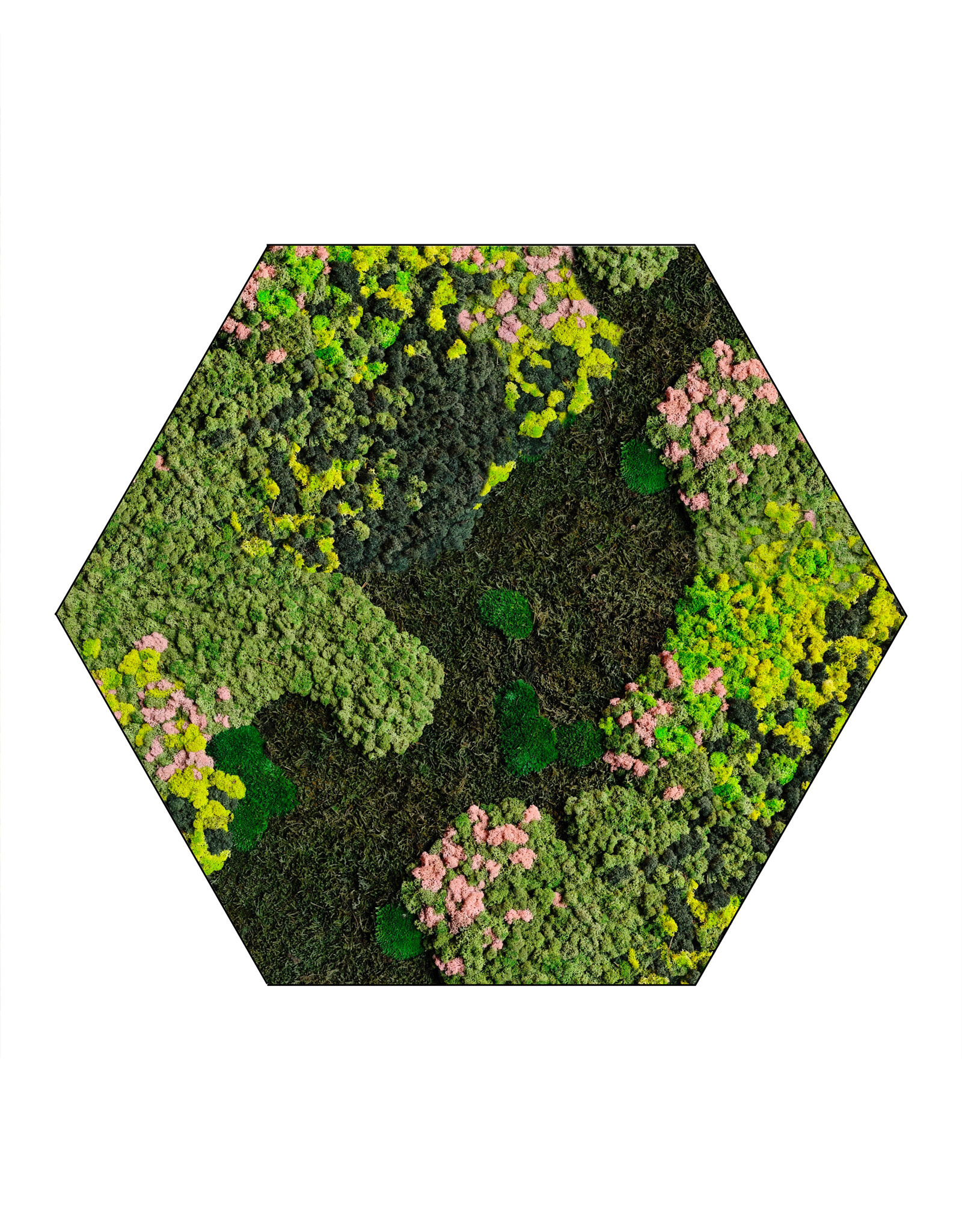 Auf der Abbildung ist das Muster eines Sechseckigen Moosbildes mit einer Größe von 100 cm zu sehen. Da es sich um ein Naturprodukt handelt, ist jedes Moosbild ein Unikat. Daher kann das Design des gekauften Moosbildes von dem ausgewählten Foto abweichen. Wünschen Sie eine andere Größe? Kontaktieren Sie uns gerne unter [email protected]