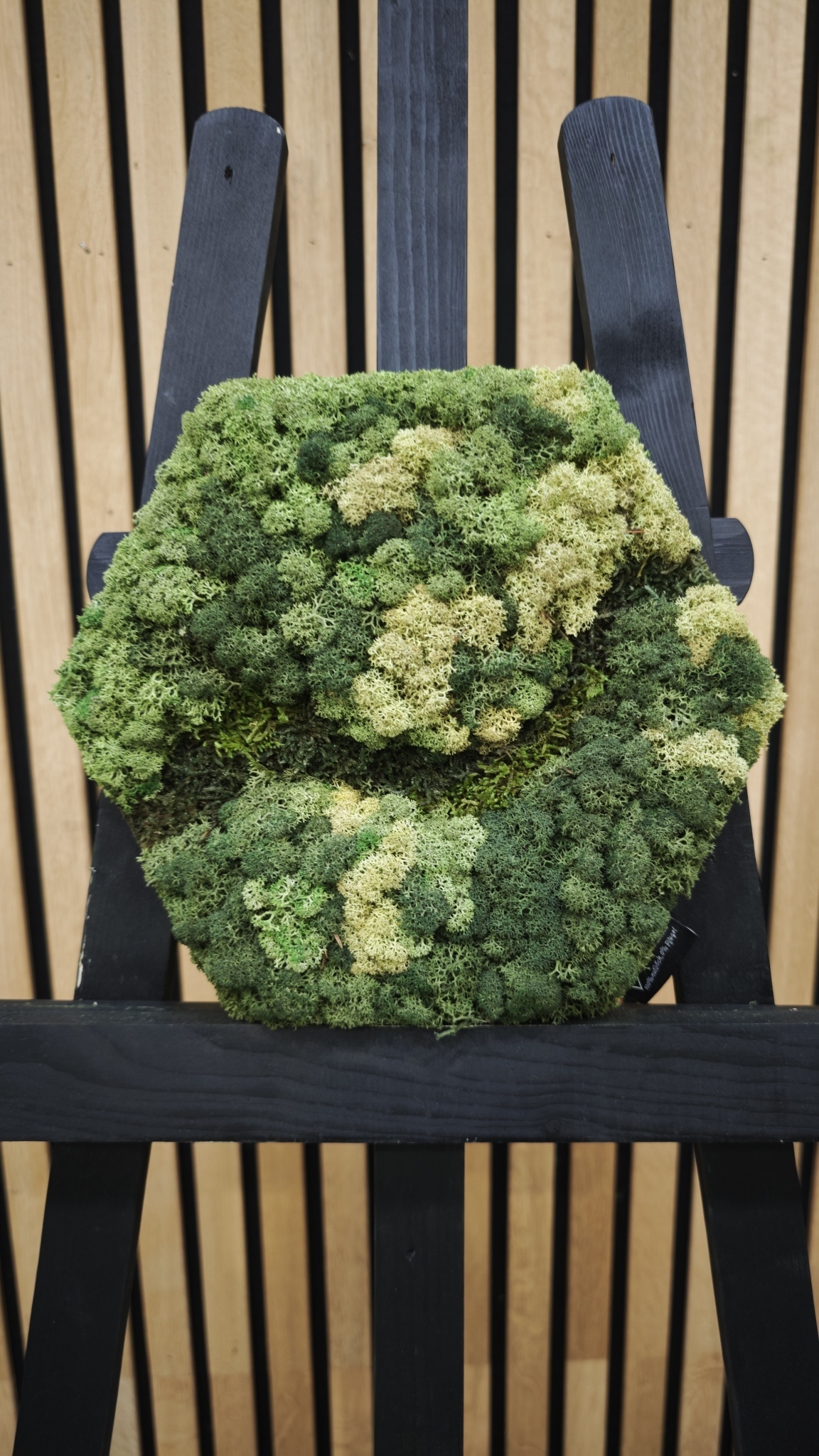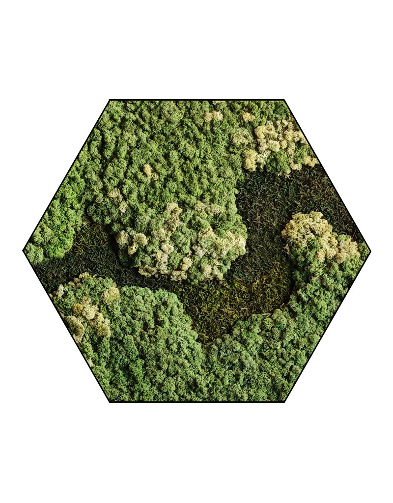 Auf der Abbildung ist das Muster eines Sechseckigen Moosbildes mit einer Größe von 100 cm zu sehen. Da es sich um ein Naturprodukt handelt, ist jedes Moosbild ein Unikat. Daher kann das Design des gekauften Moosbildes von dem ausgewählten Foto abweichen. Wünschen Sie eine andere Größe? Kontaktieren Sie uns gerne unter [email protected]