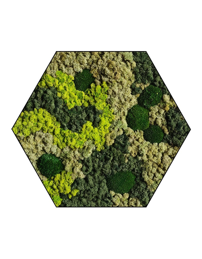 Auf der Abbildung ist das Muster eines Sechseckigen Moosbildes mit einer Größe von 100 cm zu sehen. Da es sich um ein Naturprodukt handelt, ist jedes Moosbild ein Unikat. Daher kann das Design des gekauften Moosbildes von dem ausgewählten Foto abweichen. Wünschen Sie eine andere Größe? Kontaktieren Sie uns gerne unter [email protected]